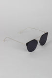 These trendy minimalist sunglasses feature a rimless design, wire arms, horn rimmed glasses shape, double bridge and nose cushions for comfort.