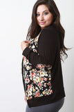 Floral Print Hooded Zip Up Sweater