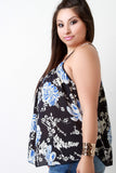 This casual plus size top features a flowy chiffon fabric with blue flowers printed, scoop neckline, thin shoulder straps, and rounded hemline. Finished with a relaxing fit. Accessories sold separately. Made in U.S.A. 100% Polyester.