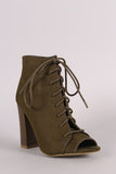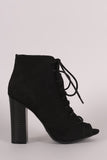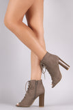 Bamboo Suede Peep Toe Lace-Up Chunky Heeled Booties